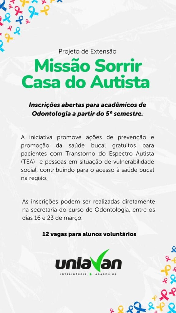 A Extensão Universitária é um dos três pilares da Educação Superior, ao lado do ensino e da pesquisa. Na Uniavan, esse compromisso aparece no: